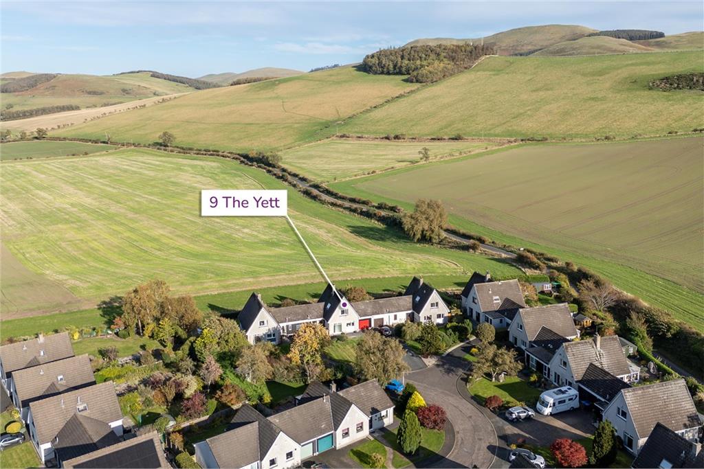 The charming village of Kirk Yetholm offers the modern buyer an enviable lifestyle location; surrounded by truly glorious rolling landscape, the setting offers the best of a rural way of life, with a super community at its heart and excellent links to the nearby town of Kelso and further afield. 9 The Yett is a beautifully maintained, link detached property suiting a range of buyers; with future proof elements such as ground level living and bedroom it works well as a retirement or forever home, and would lend itself well as a family home, with the garden and outlook a wonderful complement to the spacious accommodation. The ground floor provides exceptional reception space with a generous lounge with panoramic outlooks over the garden and view beyond, with a second reception room currently used as a dining room adjoining a modern fitted kitchen. To the far end, a double bedroom is serviced by the neighbouring cloakroom. Upstairs, two further double bedroom enjoy wonderful elevated outlooks, with a bright shower room across the landing. A private and enclosed garden sits to the rear - with the most fabulous outlooks towards Yetholm Mains, Shotton and the surrounding countryside. A paved patio provides an ideal area for al fresco dining with easily maintained gravelled borders and lawn area, A timber shed provides garden storage with an additional lawned garden set to the front of the property with driveway providing parking for several vehicles in addition to the integral garage.