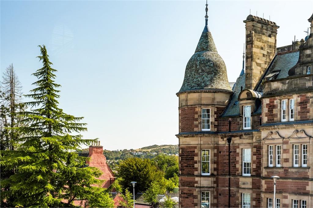 A truly spectacular mezzanine apartment boasting a generously proportioned reception room with dramatic vaulted ceilings, turreted bay and a substantial private terrace commanding magnificent open views. Spread over 2000 sq. ft. the property boasts a luxurious high spec finish throughout and offers the perfect blend of ornate character and cotemporary style. The internal accommodation briefly comprises: spectacular reception/dining room with sleek modern kitchen and substantial terrace off, principal bedroom with en-suite shower room, further double bedroom, downstairs double bedroom with en-suite, main bathroom and WC. The propety also beneifts from two allocated parking spaces. Together with an abundance of space on the doorstep to run, walk the dog and stroll with the family there are a wealth of leisure facilities within close proximity including the neighbouring Merchants of Edinburgh Golf Club and local tennis club. A factoring agreement is in place with James Gibb which is currently estimated at £1649.78 P/A for the service charge and £1963.95 P/A for block insurance.