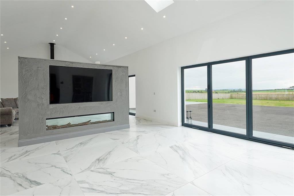 We are delighted to bring to the market this exceptional barn conversion, tucked away within a select hamlet and boasting stunning views of the rolling Ayrshire countryside. It has been meticulously built to create a spacious, low-maintenance, design-led house. Inside, there is extensive use of high specifications that remain throughout, and you will also find an exceptional interior and an inspired layout which provides light-filled and spacious accommodation. This beautifully presented and individually designed four-bedroom villa, with a sweeping driveway that sets a grand stage, is a particularly picturesque example of contemporary living. The perfect marriage of modern splendour and quality fixtures and fittings throughout; all fall under the spell. Built all on one level, the property provides extensive accommodation. Stepping through the main entrance, the welcoming hallway that leads to the rest of the apartments on this level sets the tone for the rest of this beautiful property. Its luxurious fixtures and fittings give a glimpse of the quality features throughout. The property retains only two of the original exterior barn walls, allowing great flexibility when designing and building with the contemporary layout. The magnificent open plan lounge/dining room and beautifully appointed breakfasting kitchen have a wealth of modern charm and are flooded with natural light from the bi-fold doors that open into the garden, where you can invite the outside in. There are two bespoke fireplaces finished with Venetian plastering, creating definition between the lounge and dining room, whilst the burner is an impressive finishing touch to the lounge. The luxury kitchen is a feast of modern, minimalistic chic, with streamlined work surfaces and has been fitted to include a quality range and state-of-the-art floor and wall-mounted units - it also offers quality fixtures and fittings and is complemented with a host of integrated appliances and a breakfast bar/island - making this the ideal zone for an aspiring chef. The crisp and contemporary styling continues into the four well-appointed bedrooms, with a tastefully decorated theme on bright and fresh layouts. The rooms offer lots of space to accommodate a range of furniture configurations and space for additional free-standing furniture if required. The guest bedroom features exquisite en-suite facilities, whilst the principal bedroom has a dressing area, lavishly appointed en-suite and bi-fold doors leading to a further terraced area. The property boasts a stunning family bathroom with a standalone bath, a separate shower cubicle with his and hers wash hand basins. The remaining accommodation includes exceptional fitted storage within the hall and a large utility room. Externally, generous grounds synonymous with the luxury inside complete this tranquil country home. The garden grounds that surround the property are a sheer delight - especially in the summer months. Stunning views of the countryside, along with the sound of 'peace and quiet' will make this spot popular with all members of the family. 'Mid Lambroughton Barn' provides more beauty than even a postcard could hold. Electricity Supply: British gas Water Supply: Scottish Water Sewerage: Scottish Water Mobile Coverage: Full 5G Coverage