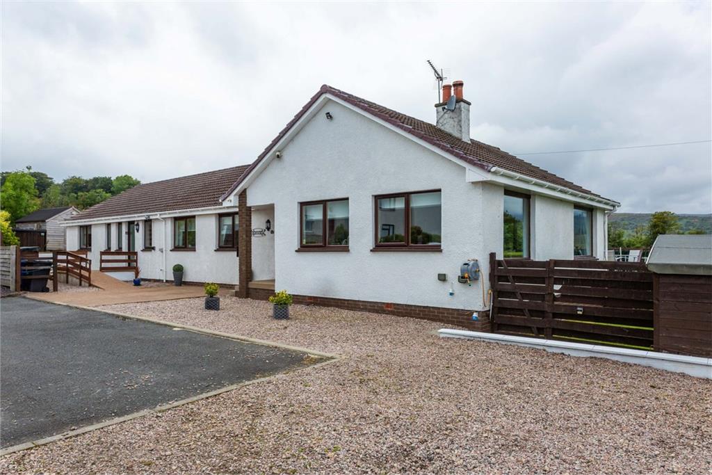 Separate Annexe Set at the end of a cul-de-sac in an elevated position above Brodick, Highview has a stunning location backed directly onto open fields, ensuring peace and tranquillity, as well as some of the most incredible mountain and coastal views on the Isle of Arran. The single-storey home is an expansive four-bedroom dwelling which further boasts a one-bedroom self-contained annexe, providing buyers with a wealth of opportunities and an abundance of space. Highview lends itself to an array of scenarios for the entire family, providing freedom for independent family members and guests, and potential for an additional source of income on the holiday rental market – which is very popular here on Arran. The home is in outstanding condition throughout, and it further benefits from generous private parking and lovely wraparound gardens that make the most of the awe-inspiring views. Entrance - Welcome to Highview Stepping inside, a central hall provides a handy cloak cupboard and a wonderful first impression that sets a high bar for the following accommodation. Reception rooms – A lovely room with spectacular views Generously proportioned and bathed in all-day sun, the living room is an exquisite space for daily use. It features an oversized window and patio doors to the garden, both framing spectacular views across Brodick, to Goatfell mountain and over the Firth of Clyde. The room is further enhanced by a coal stove for cosy evenings in; plus, it is suavely decorated with a tartan accent wall set against a neutral backdrop and soft carpeting. Kitchen – A contemporary kitchen/dining room Openly connected to the living room, ensuring a flood of triple-aspect light, the kitchen and dining room is a bright and spacious setting for family meals. It is organised around a central island, and is generously appointed with contemporary cabinets and complementary worktops. The sophisticated look is finished with mosaic splashbacks and a range of quality integrated appliances (electric hob, extractor hood, and raised oven and microwave). It also has room for freestanding white goods. Plus, a separate utility room offers further space for additional freestanding appliances. Bedrooms – Four tranquil bedrooms and a versatile store The home’s four bedrooms all adhere to impeccable standards, incorporating attractive neutral décor that enhances a relaxed ambience. Bedrooms one, two and three are also laid with plush carpets, whereas bedroom four has wood-textured flooring. Furthermore, the principal bedroom enjoys the luxury of a modern en-suite shower, whilst the second bedroom has a built-in wardrobe. There is also a versatile store room. Currently used as a walk-in dressing area, this space could work equally well as a home office. Bathrooms – A chic family bathroom and modern en-suite As well as the modern en-suite shower room, Highview features a charming family bathroom, which is neutrally decorated and textured by mosaic splashbacks. It has a three-piece suite, and is comprised of a toilet, a storage-set washbasin, and a bath with an overhead shower. Annexe – A self-contained annexe With a lockable connection to Highview, but with its own front entrance and exit to the rear garden, the self-contained annexe essentially provides a second home which offers fantastic rental income potential. It starts with a welcoming hall that provides a WC and walk-in cupboard before flowing through to an open-plan kitchen, living and dining room. This spacious reception area, including the well-appointed kitchen, further extends to a private outside deck as well. Furthermore, the annexe boasts a large double bedroom with a stylish feature wall and its own en-suite shower room. Like the main home, the annexe is beautifully presented throughout and finished to high standards – perfect for guests and holidaymakers. Highview and the annexe are kept cosy all year round thanks to oil central heating and double-glazed windows. Both spaces also have access to the attic for added storage. Garden & Parking – Wraparound gardens with amazing views Highview and its annexe are enveloped by low-maintenance wraparound gardens that incorporate charming decked areas, a rear sundowner terrace, and a selection of outbuildings/storage. Set beside open fields, the rear garden also comes complete with a sunny aspect and truly outstanding views which encompass the entire range of hills above Brodick Bay. Furthermore, private gravelled parking areas provide off-road parking for multiple vehicles. Directions From Brodick pier and the Ferry Terminal turn right onto the shorefront. Turn left before Co-op into Springbank Way, then right onto Alma Road. Second left into Alma Park and climb to the top of the hill where Highview can be found at the head of the cul-de-sac with ample gravelled and off road parking.
