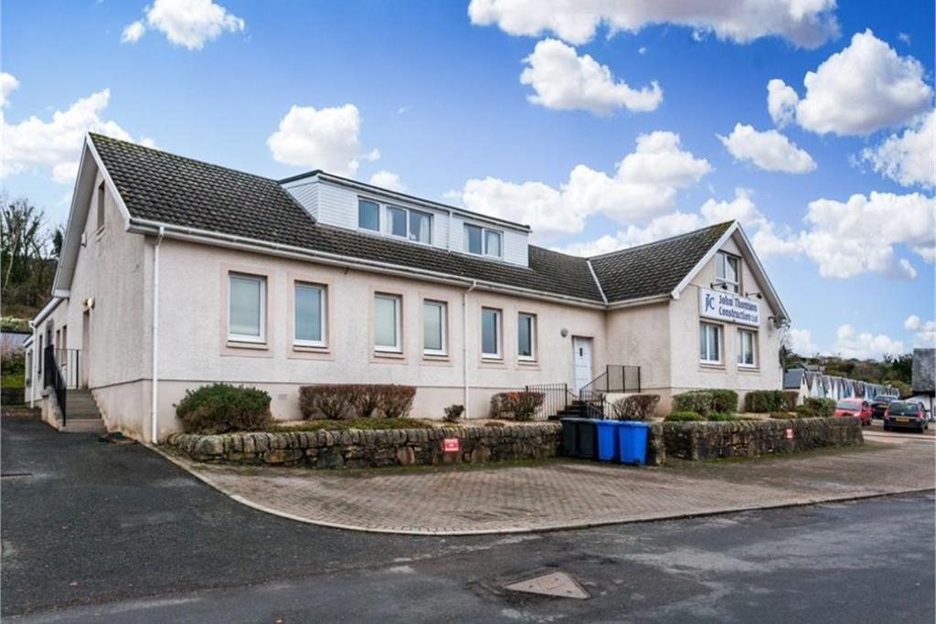 The property, which is currently the headquarter offices of John Thomson Construction, is a detached building with office space throughout the ground floor and two residential flats above. It was developed into purpose built office space by the current owner in 2002, with the flats having been used for staff and contractor accommodation as required. The offices are spacious and of modern finish with timber floors overlaid in carpet and commercial vinyl, double glazed windows, fluorescent strip lights and an oil-fired heating system with radiators to most rooms. The Property has private car parking to its front elevation with up to 8 car spaces. The office contains the following accommodation: Ground Floor A main door reception waiting areaFront officeBoardroomVariety of private officesStoresKitchen, and toilet facilities. The flats are self-contained sharing a main door access off the front elevation, with double glazed windows and electric panel heaters, having the following accommodation: Flat 1 Hallway, Living Area, a Kitchen, Two Bedrooms and Shower Room with WC. Flat 2 Hallway, Living Area, Bedroom, a Kitchen and a Shower Room with WC. Indicative floorplans are provided. The office property extends to a net internal floor area of 287 sqm (3,089 sqft), or thereby. The one-bedroom flat extends to a gross internal floor area of 60 sqm (646 sqft) and the two-bedroom flat to 77 sqm (829 sqft), or thereby. The rateable value of the office is £12,600 and the property benefits for 75% relief via the Small Business Bonus Scheme, subject to status. The flats are noted under Council Tax band B. The offices have potential for conversion to residential, or serviced accommodation, subject to obtaining the necessary Local Authority consents. Further enquiries in this regard should be directed to North Ayrshire Council planning department on 01294 324319. Offers over £450,000 are invited for the full property with the benefit of vacant possession from Spring 2024. The price is quoted exclusive of VAT. available upon request. Each party to be responsible for their own legal costs incurred. Lamlash is located on the east coast of the Isle of Arran, around 4 miles and an 8-minute drive south of the ferry terminal in Brodick, the largest settlement on the island. Park Terrace is a mixed commercial and residential locality to the west of Lamlash village centre, and just off the A841 ring road around the perimeter of the island. The Isle is Arran is located off the west coast of Scotland in the North Ayrshire Council region and is accessed via regular ferry crossings with a 55 minute journey time to Brodick from Ardrossan, and a second ferry to the north of the island from Claonaig on Kintryre. Ardrossan is 35 miles south west of Glasgow, with good road links and the town offers regular rail services to Largs and Glasgow. Arran has a population of around 5,000 persons, which swells significantly throughout the year during tourist season.