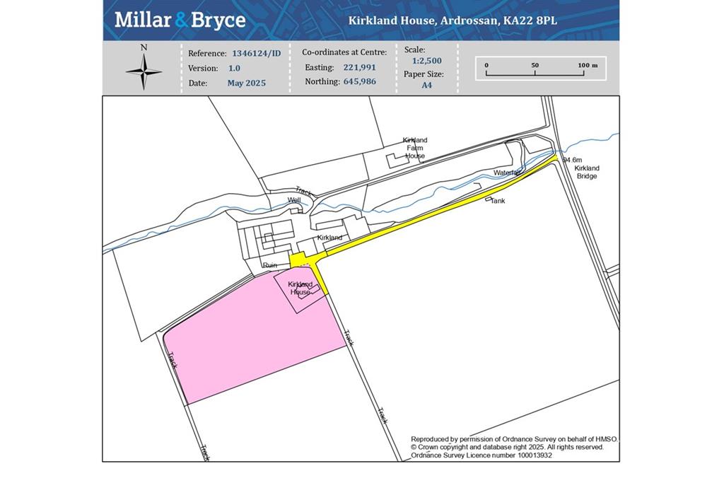 Occupying a fabulous elevated site within walled garden grounds that offer panoramic views of the surrounding countryside and to the Firth of Clyde and Arran in the west, Kirkland House is a stunning traditional blonde sandstone detached villa extending to more than three thousand five hundred square feet. The property is presented in excellent internal and external order retaining many original features and comprises twelve principal apartments set over two levels. In addition to the garden grounds the property has approximately three acres of land immediately to the south and west making this an ideal home for clients with an equestrian interest. Kirkland House lies less than two miles to the south of the craft town of West Kilbride which has a main line train station with a regular direct service to Glasgow and Largs. In more detail the accommodation on offer comprises an entrance vestibule which opens to a broad reception hallway with access to fully tiled three piece shower room. The reception hall leads to a beautiful formal living room with real fire and a bay window that affords uninterrupted views over the surrounding fields to the Firth of Clyde and Arran in the west. There is a sitting room adjacent to the lounge with a woodburning stove and excellent views. The reception hall also opens to a spacious dining room which currently features a real fire and a dining table suitable for twelve guests. The kitchen is accessed from the rear of the reception hall and is fitted with a range of shaker style wall and base units with integrated dishwasher and four oven Aga range cooker. To the rear of the kitchen is a scullery with extensive storage that leads to a utility/mud room with two Belfast sinks and doorway access to the rear gardens. A stairway from the kitchen leads to a sixth bedroom with WC/cloakroom which was originally servants accommodation. A broad stairway from the reception hall leads to the upper landing which features four double bedrooms and a study/single bedroom. The master and guest bedrooms to the front have panoramic elevated country and Clyde/Arran views. The family bathroom is located on the first floor and is fitted with a three piece suite to include WC, wash hand basin and bath with mixer shower. The bathroom features original Vitralite wall tiles. In addition to the above the property has extensive loft storage, double glazing, oil fired central heading, landscaped garden grounds and extensive driveway parking with a gated entrance. A gate on the west boundary gives access to approximately three acres of paddock, ideal for families with horses.