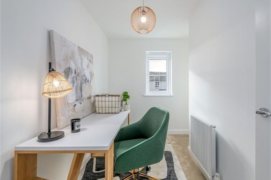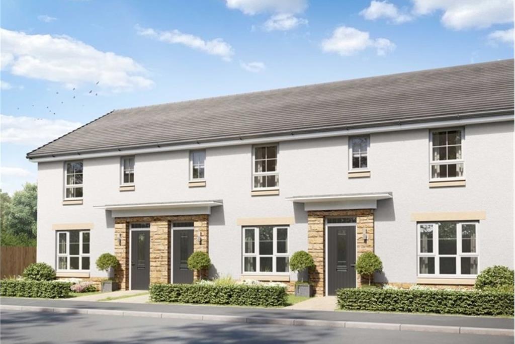 This stylish home has a front-aspect lounge which connects to the bright kitchen/dining area, which opens onto the back garden. A lobby with utility space and WC is located just off the kitchen. Upstairs are two double bedrooms – the main with en suite – as well as the family bathroom. The third bedroom is a flexible space that could easily double as guestroom or study.
