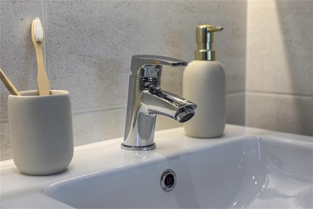 - Modern, family bathroom with three-piece suite and Porcelanosa tiles
