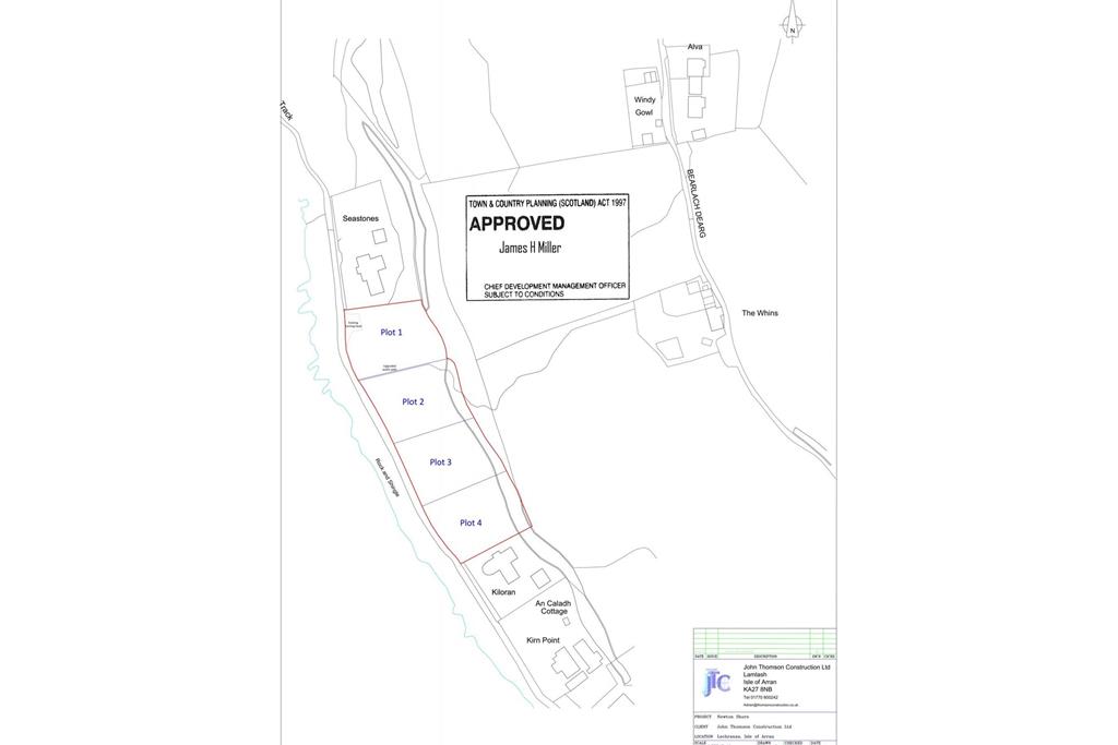 Three exceptional building plots for sale in the idyllic village of Lochranza, measuring approximately 35m wide x 45m deep and situated in the North Arran National Scenic Area, one of the most breath-taking and picturesque sites on the entire Isle of Arran. Features Plot features Three fully serviced building plots for sale Measuring roughly 35m wide x 45m deep Situated in the picturesque village of Lochranza Panoramic views over the Firth of Clyde Approved outline planning permission for plots Zoned in a General Urban Area for planning No conservation designations cover the site Freedom to create your own house design Mains access to electricity, water and BT Body A rarely available opportunity to purchase a significant and sought-after plot of land along Lochranza's stunning Newton Shore, situated beside the coast amongst beautiful scenery, including panoramic views over the Firth of Clyde. There are four plots in total, with three for sale (the northern plot having already sold). Each plot measures roughly 35m wide x 45m deep to allow ample space for a substantial house with surrounding gardens and off-street parking. The outline planning permission for plots and access has been approved. Site Description Situated in Lochranza, towards the northern end of Newton Road, the site of the plots is visually stunning, occupying a highly desirable position in the village against a backdrop of green rolling hills and an eye-catching cliff that rolls down to the rugged coast with its sapphire-blue waters. The site lies within the breath-taking North Arran National Scenic Area and is relatively flat and open, providing panoramic coastal views that are truly inspiring. It also has a charming coastal pathway to the Whins, which will be realigned and upgraded. It is an amazing location for a forever family home or even a second holiday home, providing an idyllic coastal lifestyle in a relaxed and friendly village. Buyers also enjoy the freedom to develop their own property designs and plans, to create the house of their dreams. And when it comes to design proposals, there should be additional freedom in the style, size, and architecture as the site is zoned in a General Urban Area and there are no tree preservation orders (TPO) or other conservation designations covering the site. Proposed Development The three large plots each measure approximately 35m wide x 45m deep to provide generous living accommodation for families, as well as ample gardens and off-street parking. The plots follow a linear development line consistent with the properties on either side of the bay, which ensures a high degree of amenity and privacy. The house shapes and positions currently shown on the plots and site maps are purely for illustration purposes. As mentioned, buyers of each plot will be given the freedom to create their own detailed house designs, allowing you to develop an ideal residence bespoke to your own personal needs. Whilst the house designs are subject to planning permission (STPP), it should be possible to incorporate modern components and architectural styles, but at the same time remain in harmony with the neighbouring properties. It is an excellent and rarely available opportunity in this area to create a very special residence directly beside the coast. For added convenience, each plot will have mains access to electricity, water, and BT. However, similar to other properties along Newton Road, a private drainage system (eg. septic tank) will be required as there is no mains sewer. It is worth noting it may be possible for buyers to share a system – for those who wish to do so, we can assist relevant parties in making contact. Area Location Lochranza is thought to be the most scenically attractive of Arran's villages and is sheltered by the surrounding hills. The village focal point is Lochranza Castle, which sits on a shingle spit. On the southern side of the loch, other attractions include the Isle of Arran Distillery, which began production in 1995, the large population of red deer, golden eagles, seals and otters and a 11-hole golf course. There is a ferry terminus that allows quick access to the stunning West of Scotland via Claonaig. Kintyre here we come ! The village has an active local community, post office, surgery and the 'Stags' restaurant, which is renowned for excellent food. The Lochranza Hotel has been purchased by the local community (December 2022) and plans to re-open during 2023. Primary schooling is available at the nearby village of Pirnmill, with secondary schooling in Lamlash.