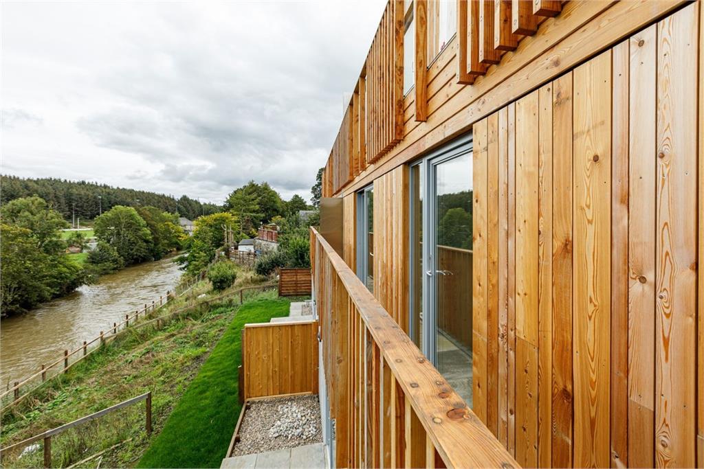 Thornwood Reach is an exclusive new development of net zero-carbon homes situated on the banks of the river Teviot. The first of a new generation of homes to tackle the urgent challenges of global warming and escalating energy prices, they are designed to cost you nothing for all your heating, hot water, lighting and cooking needs. Planned for supreme comfort and convenience, whether you are a young family or retired couple, the properties are adaptable to suit your lifestyle and changing needs over time. All materials, finishes and fixtures are of the highest specification, selected for quality, performance and minimum maintenance. Plot 1 Available Plot 2 Available Plot 3 - Sold Plot 4 - Available N.B - This is a liquadation sale and the property shall be sold as seen. Plot 4 is presently in receipt of a temporary haboitation certificate and it will be up to the purchaser to liaise with the local authority through to a full habitation certificate. No NHBC certificate or equivalent will be provided. An open top-lit central feature stair with structural oak posts links all three floors. There are stunning panoramic views of the river at all levels, with access onto stepped balconies spanning the full width of the house at the upper levels. The lower level has a 26 ft open-plan living/dining kitchen with huge sliding doors opening onto to the west facing private rear garden, with patio, grassy bank and 33 ft river frontage. The kitchen is fully-integrated with Bosch appliances – a full-height fridge/freezer, built-in microwave and pyrolitic self-cleaning oven, induction hob, dishwasher, white ceramic full double sink and quartz stone top. A snug off the living area can be partitioned to form a separate study/bedroom 5. There is a utility room with fitted storage units, washing machine connection, toilet and sink, and a separate pantry with cabinet storage and smart hot-water tank. Leading from the entrance vestibule is a large sittingroom with a wet-bar/mini-kitchen. This and the adjoining principal bedroom both have balcony access overlooking the river. The wet bar/mini-kitchen has an integrated wine cooler, microwave/grille, sink and storage for glasses and crockery - perfect for entertaining, or a late-night cup of hot chocolate. The bedroom has a large walk-in closet and luxury en-suite shower room, lined with porcelain tiles and mirrored wall. Beside the entrance is a visitor toilet. Upstairs off the top-lit landing are three additional bedrooms and large family bathroom, with a double-ended freestanding bath, patio doors leading to the upper level bacony overlooking the river, a separate walk-in shower, floorstanding vanity basin and toilet. See brochure for full details.