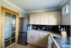 ( 2.93 m X 2.6 m / 9'7" X 8'6" )Window looking out over the back of the property, wooden effect flooring, range of wall and base units, ample work surface, extractor fan, tiled walls, plumbing for washing machine, space for tumble dryer, fridge freezer and cooker, strip lighting. -