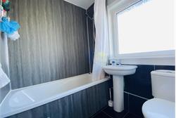 ( 1.95 m X 1.68 m / 6'5" X 5'6" )Fitted bathroom suite comprising of W.C., wash hand basin and bath with mains overhead shower, opaque window, modern tiled flooring, respatex splash back, spot lighting, radiator, wall mounted mirror. -