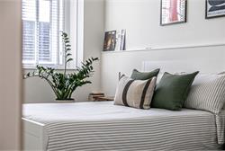Damask forms part of the The Linen Quarter combining the elegant heritage of Victorian Italianate architecture with contemporary design and architectural restoration. Beautifully presented and spacious, this one bedroom, first floor apartment has an allocated parking space and forms part of an exclusive, modern, factored, development in the heart of Dunfermline City centre. The accommodation can be accessed by the lift or stairwell and briefly comprises entrance hallway with storage/utility cupboard, open plan lounge and kitchen with integrated appliances, bedroom with fitted wardrobe and bathroom with Porcelanosa tiling. Finished to a high standard throughout with a generous floor plan and town centre location. Quality fittings include a fully integrated kitchen, continuous Amitico Spacia flooring, contemporary lighting and stylish bathroom, again with Porcelanosa tiling. In addition, there is double glazing and secondary glazing, good storage and cost-efficient heating and hot water generated by the Dunfermline district heating system controlled by a google smart thermostat. The development also provides secure entry, shared bike store, and maintained grounds.
