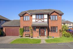We are delighted to bring to the market this impressive family villa, occupying an enviable plot within a quiet development of similar executive homes. The property offers excellent accommodation throughout with detached double garage. The grounds are fully enclosed providing a child and pet safe environment, they are easy to maintain, mainly laid to lawn with patio areas and summer house. An idyllic haven which is not overlooked and offers privacy. The accommodation is well presented and generous throughout and briefly comprise reception vestibule and hallway, downstairs w.c, lounge/diner, family room, fitted breakfasting kitchen and separate utility room. On the upper level there are four double bedrooms with en-suite facilities and four piece family bathroom. Generous built-in wardrobes in all four bedrooms. Access to attic. The double driveway leads to garage with ample visitors parking. The property benefits from double glazing and gas central heating throughout.