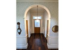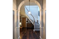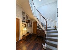 Entrance hallway with wooden flooring and a sweeping staircase leading to upper accommodation. Off the hallway are doors to two spacious reception rooms, the main bedroom, family bathroom and a passageway to further living areas. -