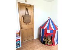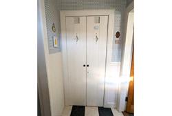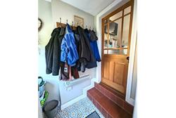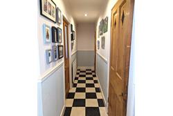 Passageway from the main hallway to bedroom 4, the kitchen and the courtyard. Tiled flooring, radiator, airing cupboard, pantry cupboard with double doors housing the boiler. Fuse box and meters. -