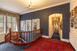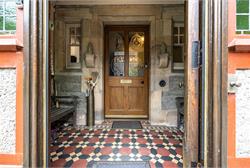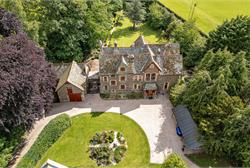 Kirkland House, situated in Kenmore on the outskirts of Jedburgh, is a grand three-storey baronial mansion that seamlessly blends historical charm with modern conveniences. Originally constructed around 1875, the property has undergone alterations and extensions over the years to create the impressive residence seen today. The ground floor welcomes you with an entrance porch leading into a spacious hallway that sets the tone for the elegance within. This level features a generous living room, formal dining room, well-equipped kitchen, comfortable sitting room, and dedicated office space. Practical additions include a boot room, storeroom, utility room, cloakroom, and a WC compartment, ensuring both functionality and sophistication. On the first floor, the landing connects to a luxurious master bedroom with an en-suite shower room, alongside a second bedroom also benefiting from an en-suite. Three further bedrooms and three bathrooms complete this floor, including an impressive family bathroom that offers a luxurious, modern freestanding pea bath with a freestanding shower positioned behind, creating an elegant and relaxing retreat. The attic floor presents a versatile upper landing, which functions as a study area, accompanied by an additional bedroom. Beyond the main house, the estate includes a semi-detached single-car garage, originally the former coach house, constructed from stone and topped with a pitched slate roof. A collection of outbuildings offers extensive storage and workspace, including a store, workshop, coal store, tool store, and two greenhouses. Additionally, a timber-framed three-car carport with a pitched tile roof adds further convenience. The property is surrounded by private gardens, enclosed by timber fencing, hedge rows, blockwork walls, and drystone dykes, creating a tranquil and secluded setting. Off-street parking is readily available, further enhancing the practicality of the estate. This distinguished home represents a rare opportunity to acquire a piece of baronial history while enjoying modern comfort in a picturesque edge-of-town location. Whether as a family home, a recreational retreat, or a heritage estate, Kirkland House embodies sophistication, space, and timeless appeal.