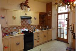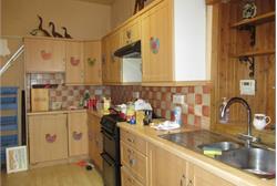 ( 3.8 m X 3.1 m / 12'6" X 10'2" )Wood effect wall and floor units. Slot in cooker with extractor over. Stainless steel sink and drainer. Wood effect floor covering, overhead light and radiator. Space for dining table. -