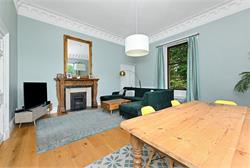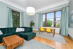 £15,000 Under Home Report Valuation. Exceptionally light and spacious upper flat within a distinctive B-listed villa, boasting a superbly presented interior with a great mix of traditional features and contemporary fittings, plus the huge bonus of a large, sunny private garden. This is an excellent location, convenient for easy access to local amenities and travelling in and out of the city. Viewing is essential to appreciate this lovely home, where you'll find an abundance of great features throughout the ready to move into accommodation. Forming part of a late Victorian villa, the property showcases the high ceilings and tall windows of that period and retains fine examples of carved mantelpieces and decorative cornicework to the ceilings. Of particular note is the superbly proportioned public room, with its southwest facing triple window formation ensuring maximum natural light and a most pleasant outlook across the rear gardens. All modern comforts are provided in the kitchen with its on trend sea green fitted units and the bathroom is nicely fitted out with a claw foot bath and vintage style mixer shower. Completing the accommodation are two generous sized double bedrooms. Excellent storage space is provided within two good sized attic areas. The large private rear garden catches a good deal of sunshine due to its south-west facing aspect and includes lawn and patio areas ideal for outdoor relaxation. • Magnificent dual aspect living/dining room with carved mantelpiece • Stylish breakfasting kitchen • Two large double bedrooms with mantelpieces • Beautifully fitted bathroom featuring claw foot bath • Private entrance and stair • Hallway with cupboard space • Extensive attic storage • Natural wood flooring • Stylish decor • Gas central heating • Secondary glazing to public room windows • Sunny, south-west facing private rear garden