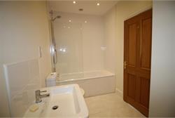 Bathroom with bath and shower over bath