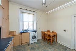 Spacious and bright two-bedroom main door double upper flat with private cellar storage and residents' parking to the rear of the building, now requiring some upgrading, set in the heart of Tranent's High Street, close to many local amenities and bus routes. Once upgraded, this property will make a lovely home for a buy to let investor, or first-time buyer and the accommodation comprises: entrance into the turret with spiral staircase and door to the cellar storage with cloakroom/WC halfway up to the first floor. On the first floor: landing with storage cupboard, front facing sitting room with feature fireplace and electric fire as well as cupboard, rear facing good size fitted dining kitchen with integrated electric hob, oven and cooker hood. The free-standing fridge, freezer and washing machine are all included in the sale (without warranty). On the second floor: landing with large, fitted cupboards, 2 good size front facing double bedrooms with dormer windows, both with eaves storage and 1 with additional fitted wardrobes, and a family bathroom/WC with shower over the bath. The property benefits from gas central heating and some double glazing and included in the purchase price are all fitted floor coverings, curtains and light fittings. There is additional attic storage available accessed via the hatch in the bathroom. Viewing of this unusual property is recommended. NOTE: the roof works detailed in the HR has been completed and the damp work is currently being dealt with and is due to be completed by the end of September