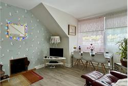 ( 6.78 m X 3.61 m / 22'3" X 11'10" )Bright and spacious front facing reception room. Wood effect laminate flooring. Two generous windows enjoying a pleasant outlook to Barrhill Woods and further dormer window with outlook to the west across the Soaperie Gardens to Kirkcudbright estuary beyond. Partially coombed ceiling. Two radiators. -