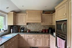 ( 5.39 m X 2.96 m / 17'8" X 9'9" )A well proportion kitchen with a good range of fitted Kitchen units providing ample storage and preparation space. 4 burner gas AEG hob with cooker hood above. Integrated AEG double oven and grill. Integrated fridge freezer. Plumbing for washing machine. 2 UPVC double glazed windows to rear with blinds above. Tiled floor. Door leading out to rear garden. -