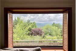 ( 4.16 m X 3.58 m / 13'8" X 11'9" )Front facing double bedroom with ample natural light from large picture window to front providing a wonderful outlook across the valley. Wooden shutters. Built in wardrobes with hanging rail and shelving along one wall. 2 Radiators. Double glazed window enjoying the fine view across the valley. Wooden shutters. Carpet. -