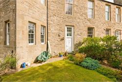 Forming part of a B listed stone building surrounded by immaculately maintained communal grounds, this end terraced villa comes complete with private garden ground and a drive in. The house has a fascinating interior layout and has been designed to take advantage of the leafy setting. Tall astragalled windows flood the rooms with light and bring the outside in. On the ground floor the welcoming reception hall leads through to the split level sitting and dining room. Also on the ground floor there is a galley style kitchen/breakfastroom and a WC. Upstairs, the principal bedroom has an en-suite shower room, there is a second double bedroom and the family bathroom. There is excellent storage space throughout including a large attic. Additional benefits include gas central heating. The development is factored by James Gibb and a quarterly payment of approximate £70 covers gardening and maintenance of communal areas.
