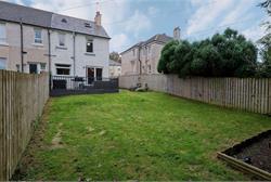 This beautifully presented end terraced villa has a brilliant white harling under a slate roof set in a fantastically proportioned rear garden. The property has been neutrally decorated and well maintained with accommodation comprising of a reception hallway, front facing lounge with limestone fireplace with living flame gas fire. To the rear there is a dining size kitchen with French doors leading to the timber deck and garden. The kitchen itself has integrated appliances that include oven, hob, extractor hood, washing machine and dishwasher. There is also separate storage under the stairwell. A carpeted stairwell leads to the first and second floors where there are two double bedrooms and the house bathroom on the first floor and the principal bedroom with en-suite shower room on the second. The specification includes Hive controlled gas central heating and triple glazing. To the front there is a double monobloc driveway for ample off street parking. To the rear there is a fantastically proportioned timber deck and an equally fantastic lawn and child’s play section all bordered by timber fencing and woodland. The property benefits from a private, south-facing garden. Mosspark is ideally situated for local amenities including Bellahouston Park and Bellahouston Sports Centre. There are excellent transport links to both the M8 and M77 motorways and a regular rail link at Corkerhill Train Station. D Lounge 14’1 x 13’10 Dining Kitchen 17’10 x 11’0 Bathroom 6’7 x 6’3 Principal Bedroom 13’9 below slope x 13’0 En suite 6’2 x 5’4 Bedroom 2 14’2 x 9’7 Bedroom 3 11’0 x 10’9