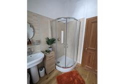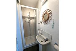 ( 2.07 m X 1.96 m / 6'9" X 6'5" )Karndean tiled flooring, quadrant shower cubicle with waterfall shower. WC, wash hand basin, radiator, frosted double glazed window to side of the property. -