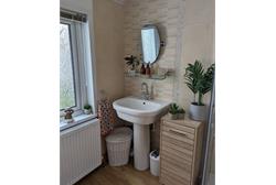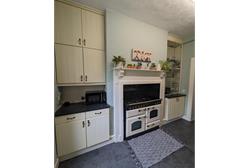 ( 2.6 m X 3.67 m / 8'6" X 12'0" )Vinyl flooring, radiator, uPVC door with double glazed window out to the rear garden. Range master cooker, integrated fan, fitted base and wall units with a glass display cabinet. Black sink & drainer with vegetable section, brass tap, plumbed for dishwasher, Breakfast bar. -