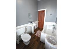 ( 3.58 m X 3.97 m / 11'9" X 13'0" )Karndean tiled flooring, wash hand basin, WC, bath, double glazed window to the front of the property, radiator. -