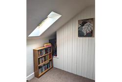 ( 2.14 m X 3.73 m / 7'0" X 12'3" )Attic room with fitted carpet, fenstro window.