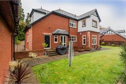 Originally built by Manor Kingdom in 2006 sits Number Five Juniper Avenue, a stunning detached villa of some 250 sqm of internal accommodation with fabulous open aspects and landscaped surrounding. The property has neutral décor and features high ceilings, deep coving and high quality American hardwood finishes, synonymous with older more traditional properties. The accommodation comprises of an entrance vestibule, formal lounge with limestone fireplace and multi fuel stove, two sets of double doors, one to the sitting room and one to the garden, breakfast dining kitchen with access to a utility room and separate walk-in pantry, family room and completing the ground floor a cloakroom with WC and wash hand basin. The feature oak stairwell leads to the first floor landing and the bedroom accommodation. The upper level has been re-modelled to create a greater proportioned principal bedroom dressing room that also includes a walk-in wardrobe and en-suite bathroom. The second bedroom also has the benefit of an en-suite shower room. Two further bedrooms and the house bathroom complete the accommodation. Externally the property is entered via a set of wrought iron electrically operated gates that lead to the monobloc driveway and access to the double garage. The wrap around lawn gardens are beautifully kept and lead to the rear where you will enjoy the fabulous open aspects of the woodland and farmland beyond the gardens. There is a cantilever timber deck with glass balustrades to take advantage of the views. The specification also includes gas central heating, security alarm system & double glazing. Quarrier's Village is a tranquil and peaceful location in which to reside, set within equal distance of Bridge of Weir and Kilmacolm, with both of these villages offering a range of shops and amenities which will adequately cater for everyday needs and requirements. For the commuting client, Quarrier's Village is a short drive away from the Johnstone bypass which links up with the M8 motorway for connection to the airport, Paisley, Braehead Shopping Centre and Glasgow city centre. C Formal Lounge 20'7 x 14'0 Sitting Room 14'7 x 12'1 Family 15'7 x 15'0 into bay Kitchen 22'9 x 18'8 Utility 9'9 x 7'4 Pantry 9'9 x 5'9 6'3 x 3'8 Principal Bedroom 16'4 x 15'7 En-suite 12'5 x 9'4 Dresser 14'2 x 7'6 Wardrobe 8'9 x 4'1 Guest bedroom 18'9 x 10'4 En Suite 7'6 x 7'1 Bedroom 3 14'0 x 9'4 Bedroom 4 10'1 x 8'8 Bathroom 11'8 x 10'7 Garage 19'6 x 19'6