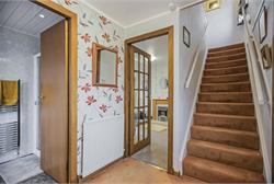 Semi-detached three bedroom 'Swedish Timber House' built in the late 1940s and found to be in good condition throughout. Set on a quiet residential street in the West Lothian village of Polbeth, less than a mile to the northeast of West Calder. It has an enclosed gravelled and mono block paved area to the front of the house, leading to a free-standing garage and back garden that is also enclosed, established and well managed. The front door opens into the naturally lit hall that has two built-in cupboards, one of which houses the gas fired central heating boiler. The spacious living room is dual aspect and has a door opening into the adjoining kitchen. There is access from the kitchen to the back garden. The shower room completes the ground floor accommodation. The stair is lit from the window on the first-floor landing. There are three comfortable double bedrooms, and the house is double glazed and has gas fired central heating.