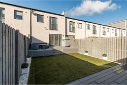 A fantastic opportunity has arisen to purchase this impressive, beautifully presented terraced villa, quietly situated within a modern development in the popular residential area of Longstone, close to fantastic amenities, commuting links and schooling. The property is presented to the market in true move-in condition and would appeal to the young professionals or young families and internal viewing is highly recommended to be fully appreciated. The accommodation in brief comprises; spacious welcoming hallway with downstairs WC and useful utility cupboard, generously proportioned and bright lounge/dining with media wall and French doors providing direct access to the rear garden, open plan to stunning fully fitted kitchen with breakfast bar, light and airy principal bedroom with fitted wardrobes and contemporary en-suite shower room, second well proportioned double bedroom with fitted wardrobes and modern bathroom with white three-piece suite. Further benefits include a district heating system and double glazing. To the rear, there are lovely open views, and the private garden is immaculately maintained with an area of lawn and decking providing the ideal seating area for outside dining/relaxing. To the front, there is ample residents parking available. There is a factoring fee payable to RMG for the upkeep of the communal areas which is approximately £50 per quarter. Council Tax Band - D
