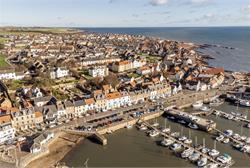 Occupying a prime harbourside position in the sought-after coastal town of Anstruther, this charming two-bedroom top-floor apartment enjoys panoramic views over the marina and harbour. Situated within a handsome traditional stone building, the property combines characterful period features with a bright, practical layout extending to approximately 70.9 sq. metres (763 sq. feet). The accommodation comprises a welcoming hallway, a spacious open-plan living, dining and kitchen area with spectacular coastal outlooks, two generous double bedrooms, a study/snug, and a modern shower room. With its breathtaking sea views, well-proportioned rooms, and enviable setting, this property is ideally suited as a holiday home, investment opportunity, or main residence. Located on Shore Street, the property sits at the very heart of Anstruther's picturesque harbour, directly overlooking the marina and waterfront. Residents can enjoy the vibrant atmosphere of the quay, with its independent shops, cafes, galleries, and renowned restaurants — including the famous Anstruther Fish Bar — all just moments from the door. Anstruther is a much-loved East Neuk coastal town, offering scenic coastal walks along the Fife Coastal Path, the popular tidal pool for sea swimming, and a welcoming community atmosphere. The town also provides excellent local amenities, schooling, and leisure facilities, while nearby St Andrews (approx. 10 miles) offers world-class golf, culture, and university life. This location is perfect for those seeking coastal living with uninterrupted sea and marina views, combining tranquillity, charm, and convenience — making it equally appealing as a weekend retreat or year-round residence.