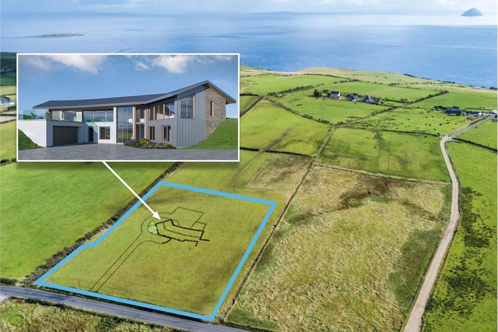 This is a once-in-a-lifetime opportunity to purchase a substantial plot of land with a spectacular location on the Isle of Arran, offering seclusion and a true rural lifestyle, surrounded by uninterrupted countryside by the coast. Measuring 1.858 acres, the plot comes with approved planning permission by North Ayrshire Council (N24/00501/PP) to build an incredible three/four-bedroom architect-designed detached house. Once constructed, this stunning contemporary home will be one of the most unique and impressive properties not only on the Isle of Arran, but in all of Scotland – so much so, we expect huge demand for this plot from all corners of the globe! A grand design for the 21st century Located in an elevated position in Shannochie, the site enjoys breath-taking countryside and panoramic sea views, offering some of the best sunrises and sunsets on the island. The approved dwelling has a distinct 21st-century design to maximise the dramatic views on offer, as well as the interplay of space and light. The design is dug into the hillside and it makes use of the site's natural slopes, reducing visibility from the road and seamlessly blending with the picturesque landscape to create an eye-catching home like no other. Arranged over two levels and with a large double garage, this expansive property (including the garage) will cover over 2,984 square feet to meet all the needs of luxury lifestyles. The upper level will feature an entrance vestibule with storage and a hall with a dedicated cloakroom. A magnificent open-plan dining area, kitchen and living room openly flows from the hall, creating a stylish reception space with a significant footprint and a wonderful array of full-height windows. It also has a walk-in pantry and the space extends outside onto a large roof terrace, which enjoys a southerly aspect to capture all-day sun. This level is home to a luxurious principal bedroom as well, which boasts a private dressing room and an en-suite. Capitalising on the outstanding country and sea views, the entire south and south-east walls of the upper level consist of floor-to-ceiling windows, ensuring light-filled accommodation at all times of the day and securing memorable views at every turn. A glazed stairwell leads down to the lower level and into a TV snug area with generous built-in storage. This subsequently connects to a plant room and a laundry room with outside access to the driveway. In addition, there are two further bedrooms on this floor, along with an adjacent family shower room. There is also a versatile study/bedroom providing homeowners with additional flexibility. All the lower floor bedrooms, as well as the TV snug area enjoy southerly-facing aspects for a flood of natural light and for those inspiring sea views. Naturally, the substantial plot allows for a wealth of garden space too, wrapping around the entire property to provide a natural haven for families. With additional land to spare, owners will have lots of options for further uses as well. Plus, extensive private parking is assured thanks to a large driveway and an integrated double garage, with access to the laundry room. Eco friendly and efficient Ensuring optimal energy efficiency, the eco-friendly home has been designed to accommodate high levels of insulation and air-tightness, alongside renewable energy technology. It will generate significant electricity, with 38 solar PV panels along the south-facing pitch of the roof. These will power a ground source heat pump through an inverter, as well as batteries to provide the heating and hot water for the house, which has been designed to the Passivhaus standard. The site has relatively easy access to mains electricity and a nearby water supply; plus, its exposed nature lends itself well to wind-power generation. A sewage treatment plant and a soakaway will need to be installed, yet the exceptional size of the site makes this easily achievable. Please note, the field directly in front of the plot may also be available by way of separate negotiation. The site is located at the southerly end of Arran. This location has many attractive coastal and forestry walks and is a short distance from Kilmory beach. The site is only 4 miles from Whiting Bay with shops, pubs, restaurants and other amenities including a primary school, village hall, garage, golf course, bowling and putting greens. Four miles further on, is Lamlash with a secondary school, hospital, police, fire and coastguard stations and sheltered mooring facilities in Lamlash Bay.