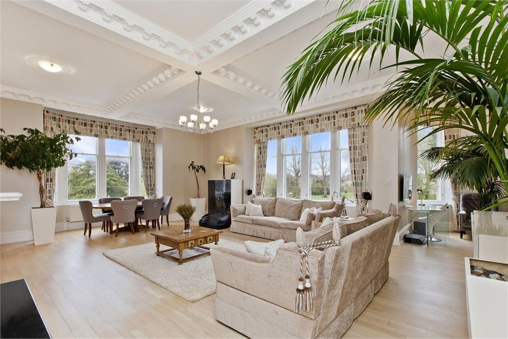 A substantial and extremely impressive upper flat, bursting with period charm, forming part of the B-Listed Southfield House, a converted mansion built in 1875 by John Chesser.This beautiful home has magnificent reception rooms and a layout ideal for modern living. An impressive communal hall is accessed at ground floor level with a broad staircase leading up to the well-presented flat where the accommodation is arranged over the first and second floor and comprises: First floor: Broad entrance hall with storage cupboard, magnificent dual aspect drawing room with ornate cornicing, a marble fireplace and gas fire, access to an impressive open plan kitchen/dining/living room with lovely open views over the communal garden. There are two bedrooms served by a modern shower room. Second floor: Spacious master bedroom with en suite bathroom and generous storage, further double bedroom served by a bath. A spiral metal staircase rises from the landing to turret room above with far reaching views. Outside Southfield House is accessed by a private road from Carnbee Avenue and is set in an attractive and peaceful location surrounded by greenery. The flat has allocated parking space for two cars, further parking to the front of the building and a communal lock up storage area to the rear. The beautiful and well maintained grounds are a real feature of the property with the main garden area located on the south-east side of Southfield House.The development benefits from a proactive residents association. There is a monthly service charge of approximately £100, which includes gardening, roof maintenance and minor communal repairs (no buildings insurance). Location The property is set in a tucked away location within leafy Liberton, situated to the south of Edinburgh's City Centre. There is an abundance of open green spaces nearby including Blackford Hill, Hermitage of Braid and Inch Park which has a play area, tennis and padel courts and community sports club. The Pentland and Braid Hills are a short drive and provide further opportunities to embrace the great outdoors. Keen golfers will be in their element with Liberton and Braid Hills Golf Clubs both in the locale. Bustling bars and fashionable restaurants are just a short distance away in vibrant Morningside and Newington. Daily shopping needs are well-catered for by nearby Cameron Toll Shopping Centre which houses an Aldi, Sainsbury’s, and other high street retailers. It is ideally located for the Royal Infirmary, the University of Edinburgh Kings Buildings, and Napier University. Commuters into Edinburgh benefit from an efficient bus service along with proximity to the City Bypass and Scotland’s motorway network. Extras All light fittings, blinds, curtains, fitted flooring and all white goods are included in the sale price. The Bang & Olufsen music system and the Bang & Olufsen wall mounted television in the drawing room are included in the sale.