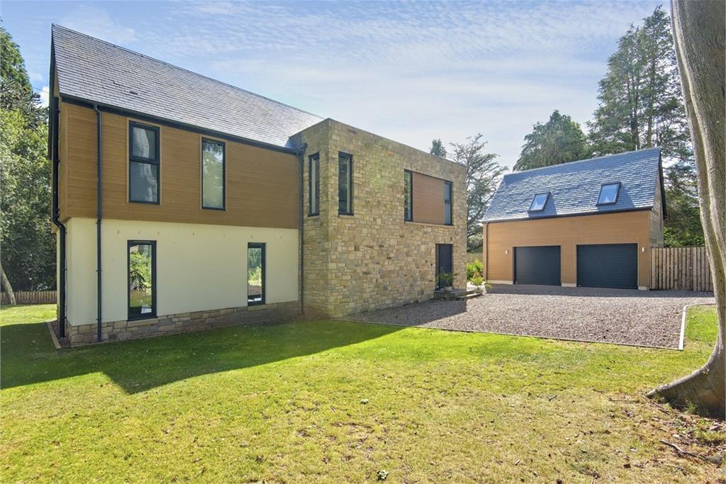 Discover an incredible one-of-a-kind detached house that promises the ultimate in contemporary living, offering a bespoke build and a floor plan spread over 3031 square feet, with extensive private parking, considerable wraparound gardens (nearly 0.5 acres), and a breath-taking location at the foot of the Lomond Hills next to Gateside. It is situated on the outskirts of Gateside village, surrounded by open countryside beside the Lomond Hills Regional Park - a wonderful base for families as it is within convenient driving distance of Edinburgh, St Andrews, Dundee, and Perth. This stunning four-bedroom family home further boasts a wealth of high-end accommodation, all finished to an exceptionally high specification. It incorporates one of the most impressive open-plan living areas, as well as a German kitchen, and four designer bathrooms (including a WC). With a host of luxurious features, private parking for multiple vehicles, and 0.5 acres of wraparound gardens, this prestigious home goes over and above all expectations. Nestled amongst mature trees, Ukaipo has a truly inspiring location that offers a genuine sense of rural seclusion. The home's façade complements the area, being adorned with quality building materials and Millboard cladding for a superior-lasting authentic wood finish. Inside, the inspiration continues with a vestibule and reception hall that immediately establish the home's luxurious credentials. The home's sprawling open-plan reception area covers the majority of the ground floor, combining a living and dining space with a high-specification breakfasting kitchen. It offers a substantial amount of room for a wide variety of lounge furnishings, as well as a large table and chairs creating the perfect setup for every occasion. Decorated in crisp white and with Karndean LVT flooring (like the hall), it enjoys a sophisticated aesthetic, worthy of the finest home interior magazines. A stylish media wall adds another touch of elegance. In addition, this extraordinary space has oversized dual-aspect windows to the southeast and northwest, capturing all-day sun and the picturesque backdrop of the rolling Lomond Hills. Glazed sliding doors also extend the room out into the garden, allowing a seamless transition to outside. Organised around a central island with a breakfast bar, the German kitchen has a statement design by Pronorm. It features a generous selection of contemporary cabinets, paired with stylish Dekton worktops to offer all the space and storage a family could need. Thanks to the breakfast bar, it also forms a sociable centrepiece for conversing whilst cooking. Adding to the designer appeal, the kitchen is fitted with Franke sinks and a range of high-end integrated appliances, ensuring a smooth finish. Appliances include: Bora induction hob with built-in extractor, Siemens twin eye-level ovens with a warming drawer, Siemens tall fridge, Siemens tall freezer, and Siemens dishwasher. A neighbouring utility room also provides a quiet space for laundry. Connected to a naturally-lit galleried landing (with a glass-framed staircase), the home's four bedrooms are all wonderfully large doubles that maintain the sharp eye for contemporary aesthetics. Each room features soft deep-pile carpeting and built-in mirrored wardrobes, ensuring optimal comfort and convenience. Furthermore, every room is fronted by southeast-facing glazed doors that open out to a Juliet balcony, allowing a flood of light inside whilst framing panoramic hillside views. Continuing the home's luxury appeal, the principal and second bedrooms both have their own opulent en-suite shower room too. Ukaipo has a ground-floor WC, the two en-suite shower rooms, and a first-floor family bathroom, all of which have matching high-specification designs. Adorned with Porcelanosa tile work and clever recessed wall storage, they maintain design continuity, incorporating sanitaryware by Laufen, taps and showerheads by Hansgrohe, and Merlyn shower screens. The four-piece family bathroom firmly sets the standards which the others follow, with its floating storage-set washbasin, concealed-cistern toilet, double walk-in rainfall shower enclosure, and freestanding (solid surface) mineral stone bathtub by Riluxa. For the ultimate in comfort, the property has a smart Nest heating system, with oil-fired central heating, alongside electric underfloor heating in all the bathrooms. It also features double-glazed windows and a solar-panelled roof. In addition to the wealth of interior space, Ukaipo provides impressively large wraparound gardens which have sweeping lawns that capture sun throughout the entire day. The gardens are dotted with mature trees and they offer tantalising views of the Lomond Hills. To the southeast-facing rear, there is a patio and a further stretch of lawn offering all the space families could desire. Ample private parking is provided via a multi-car driveway and a detached double garage.